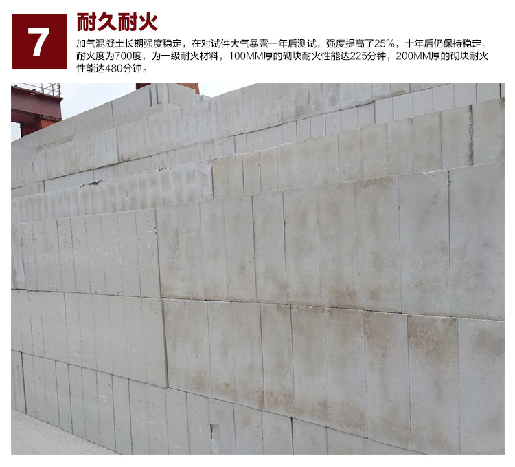 8、 耐久:加氣混凝土長(zhǎng)期強(qiáng)度穩(wěn)定,在對(duì)試件大氣暴露一年后測(cè)試,強(qiáng)度提高了25%,十年后仍保持穩(wěn)定。